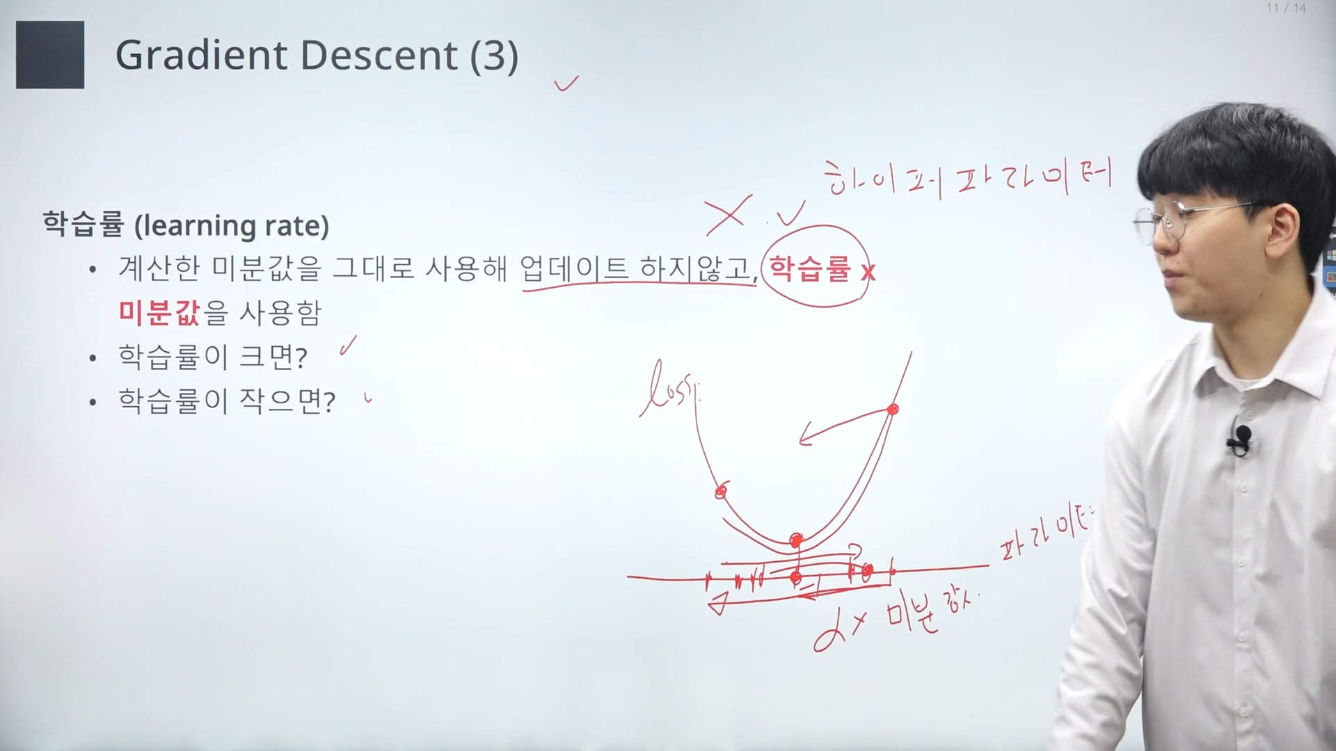 (미분값이 클 때 학습률을 적게 해야한다는 것을 틀린 말이나 이해를 위해 이렇게 정의하고 넘어감)