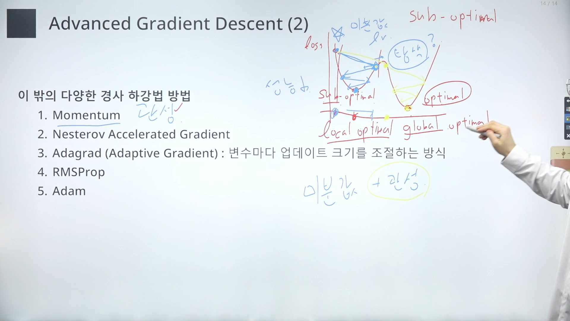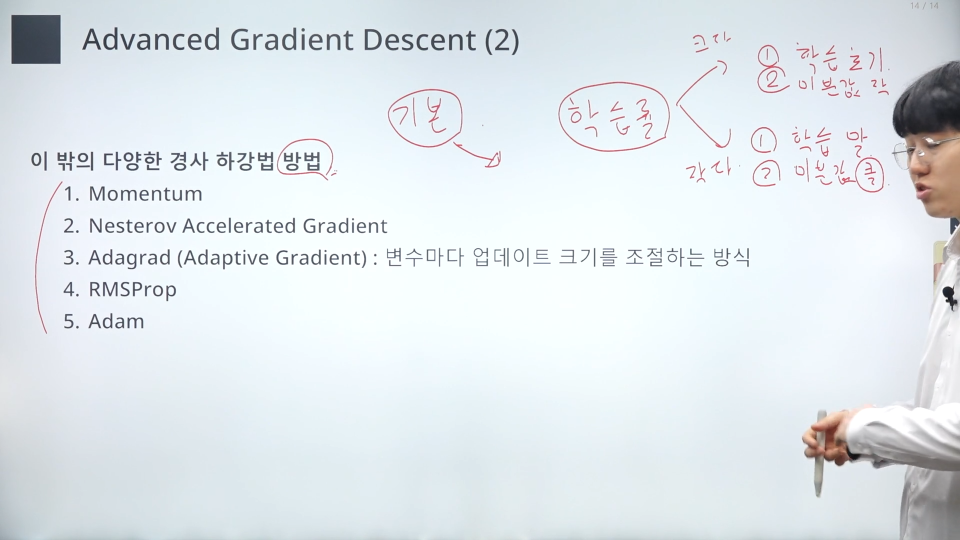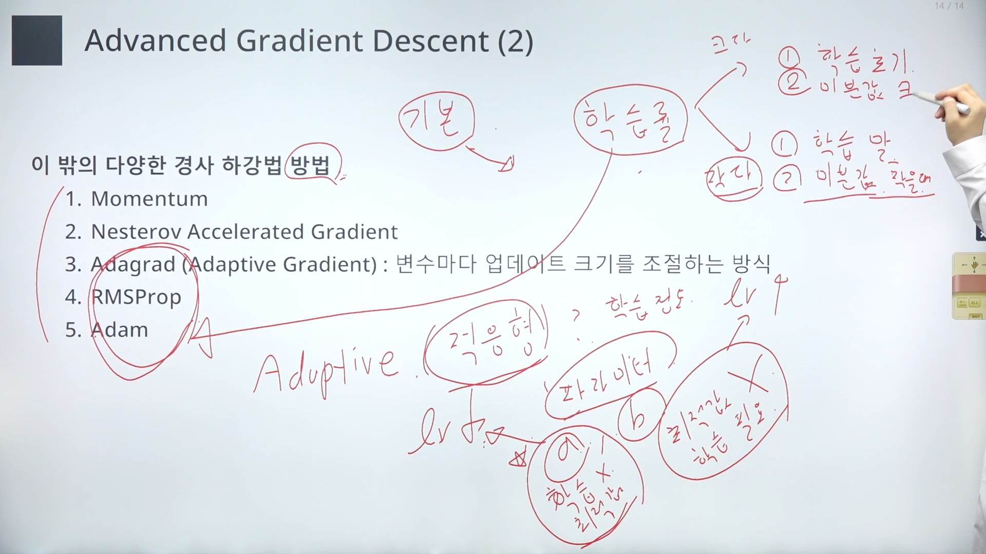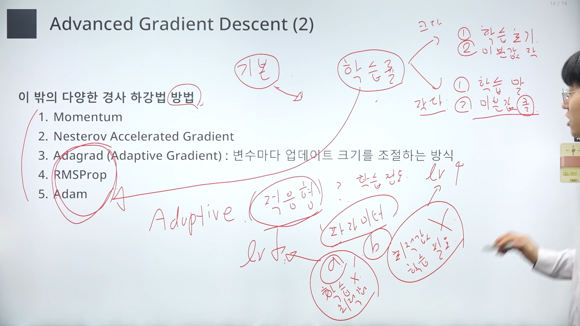 적응형 -> 모델의 파라미터에 따라 다른 학습률을 줌.