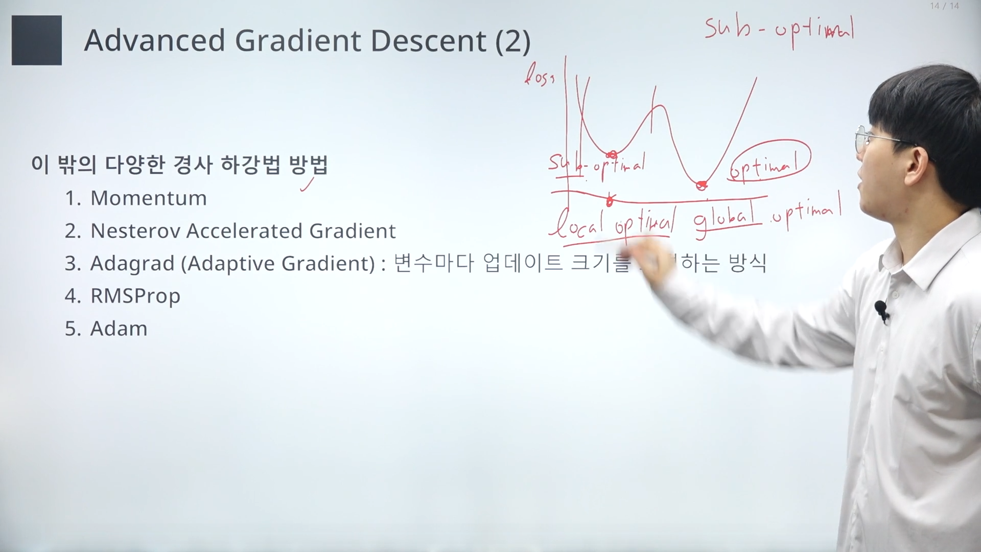 모든 파라미터에 대해서 가장 작은 최적값을 가졌을때 global optimal.