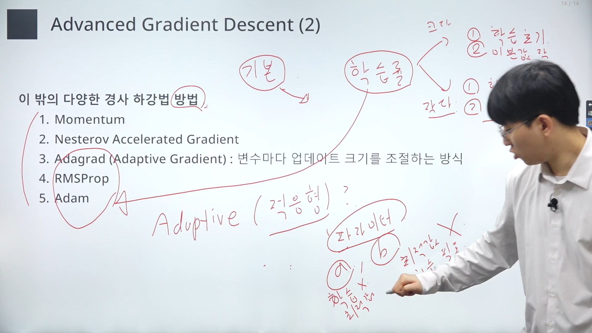 이런 상황에서 a에게는 학습률을 적게, b에게는 학습률을 많이 줌.