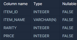 - ITEM_INFO A에서 RARE 희귀도를 가진 아이템 찾기