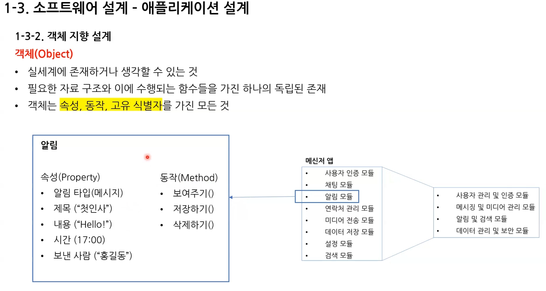 매신저 앱의 알림기능 하나를 객체라고 생각했을때 속성과 메소드. 서로 상호작용