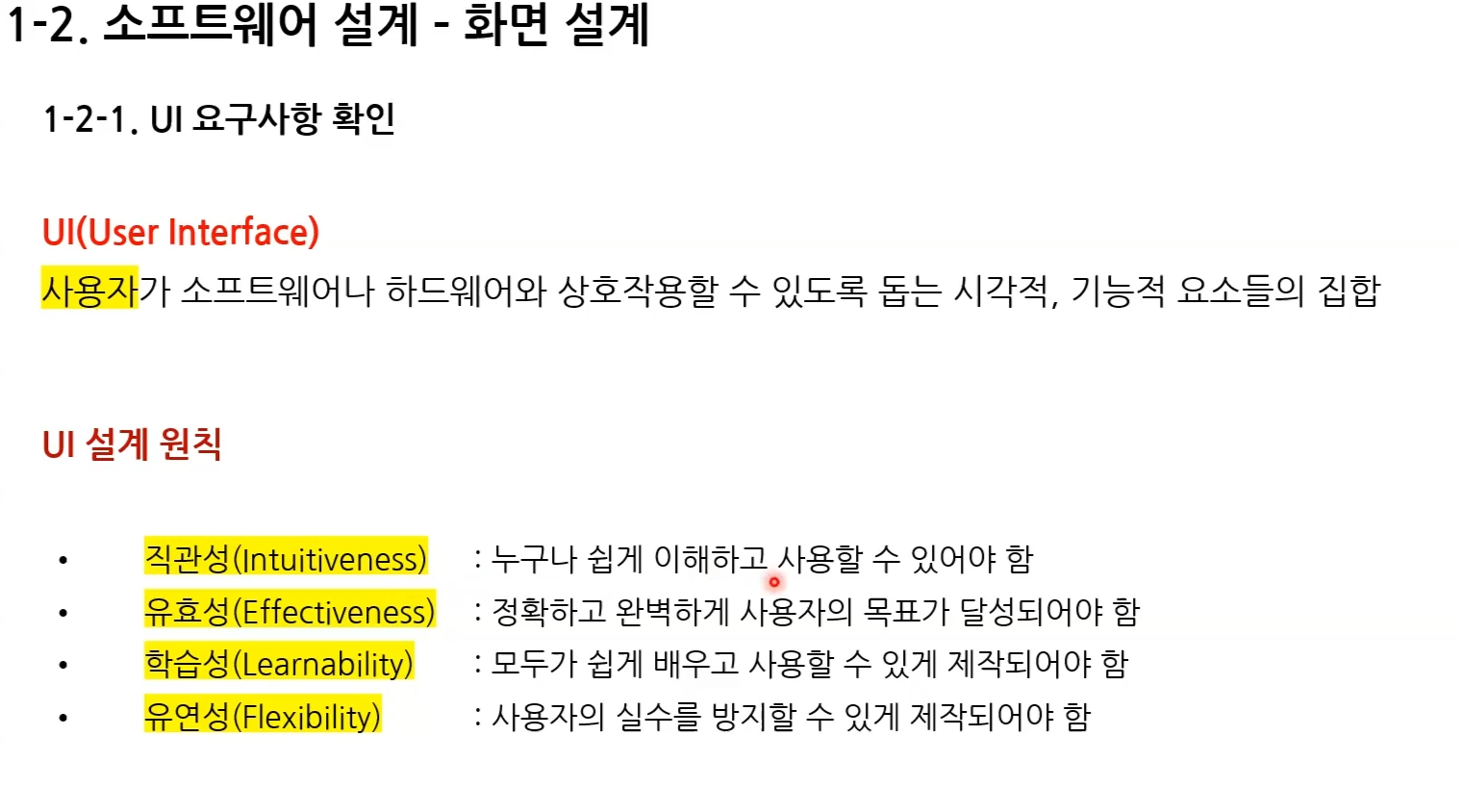 1강에서는 소프트웨어 설계에 관련하여 배운다. 배울 게 많네....그래도 앞으로 있을 강의와 비교했을때 짧은 편에 속하는 편이다. 아자아자.... 정보처리기사 합격을 향하여....