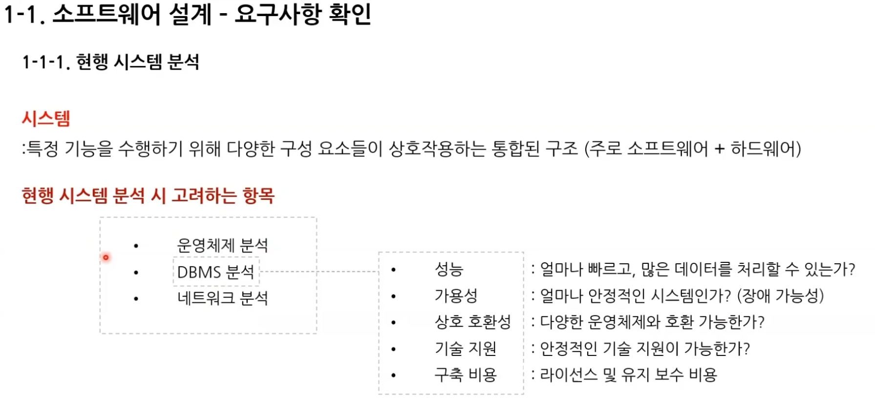 요구사항 확인을 하려면 현행 시스템 분석이 일어나야 함.