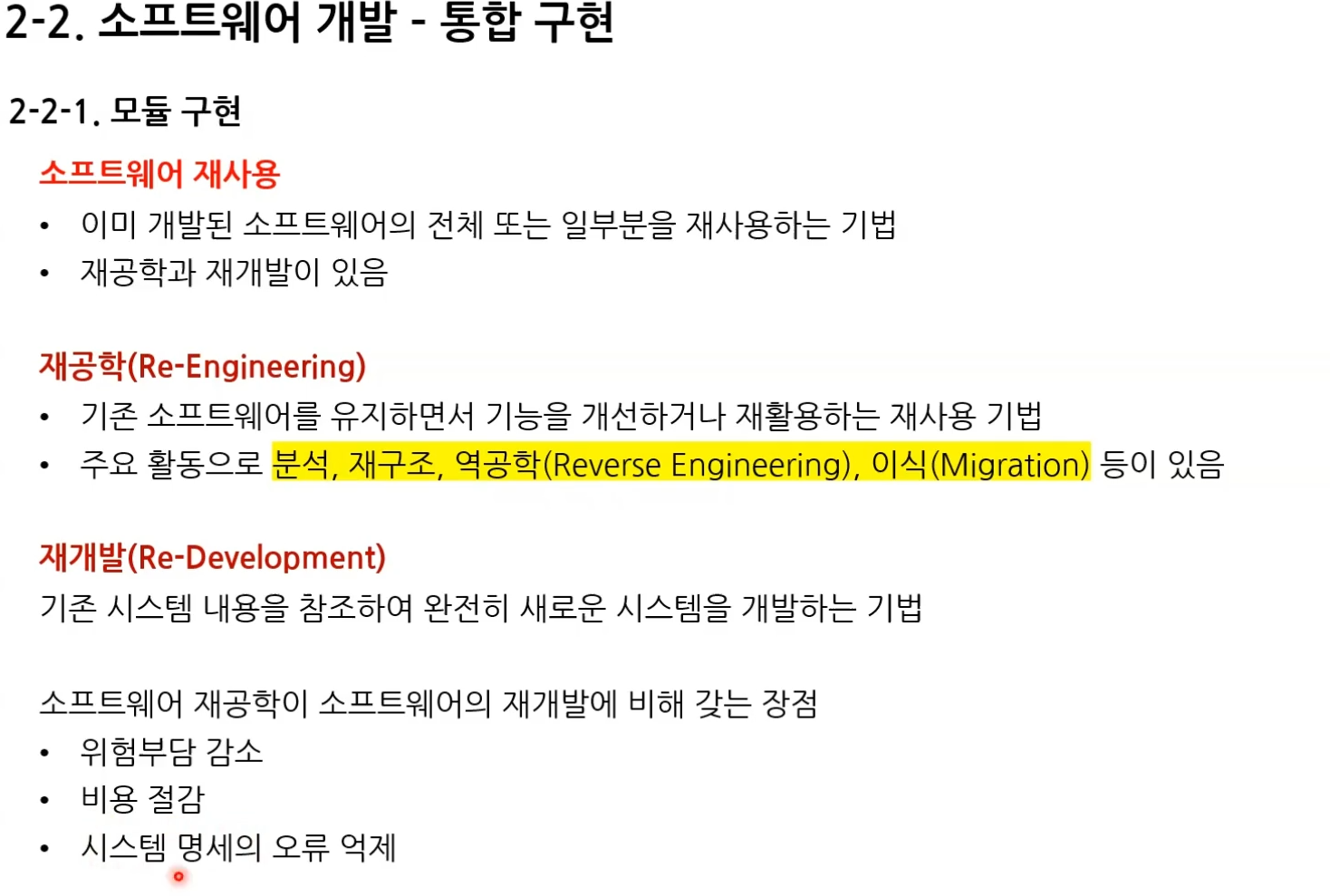 - - 역공학- 기존에 만들어진 소프트웨어를 분석하여 설계를 알아내는 방법