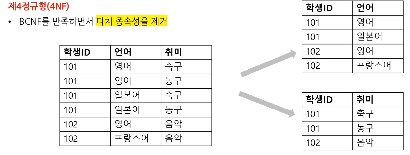 한 항목이 여러 개의다른 항목과 각각 독립적으로 연결되어 있는 관계를 다치 종속성이라 함