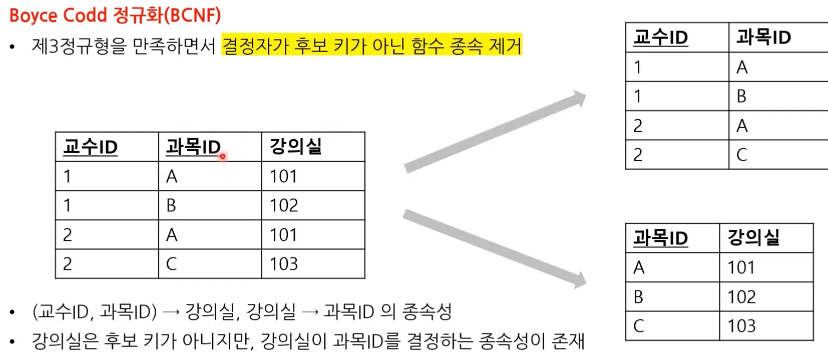 테이블을 분리하면 후보키가 아닌 함수 종속이 사라져 BCNF를 만족
