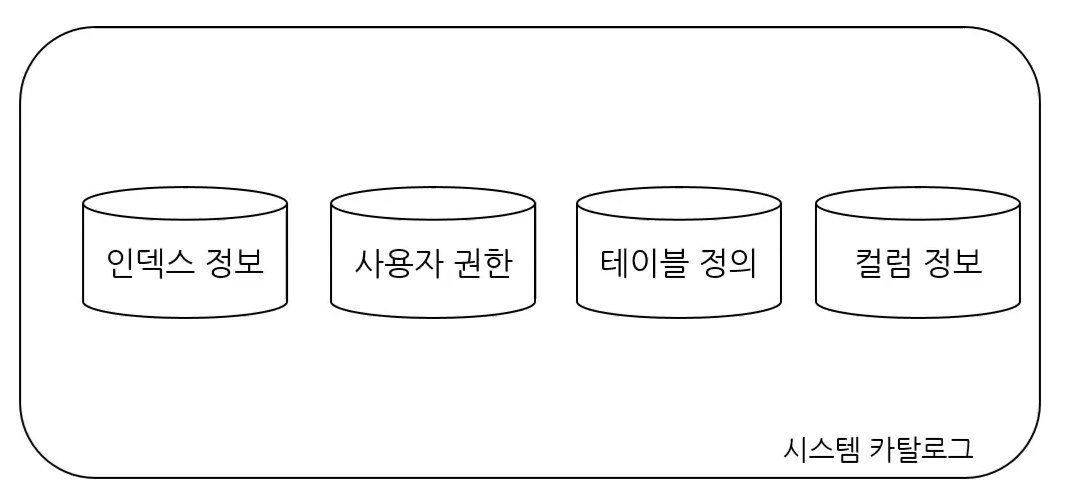 -DBMS가 스스로 생성하고 유지하는 데이터베이스 내의 특별한 테이블 집합체