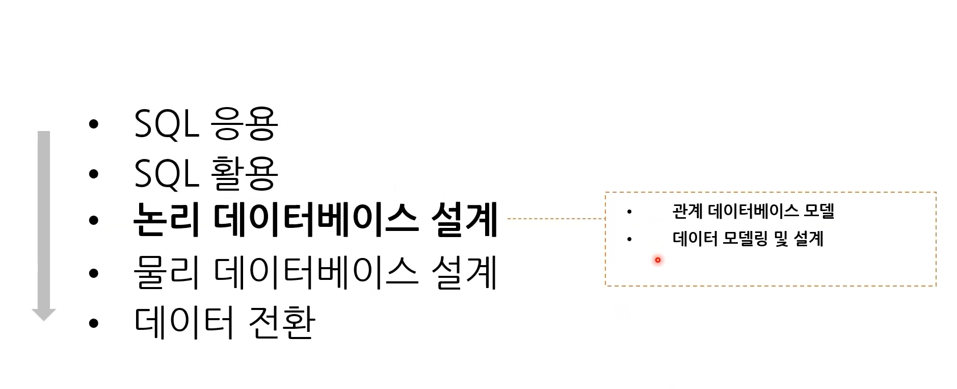 -데이터베이스의 전반적인 구조 정의, 데이터의 내용과 관계를 면확히 정리하는 단계