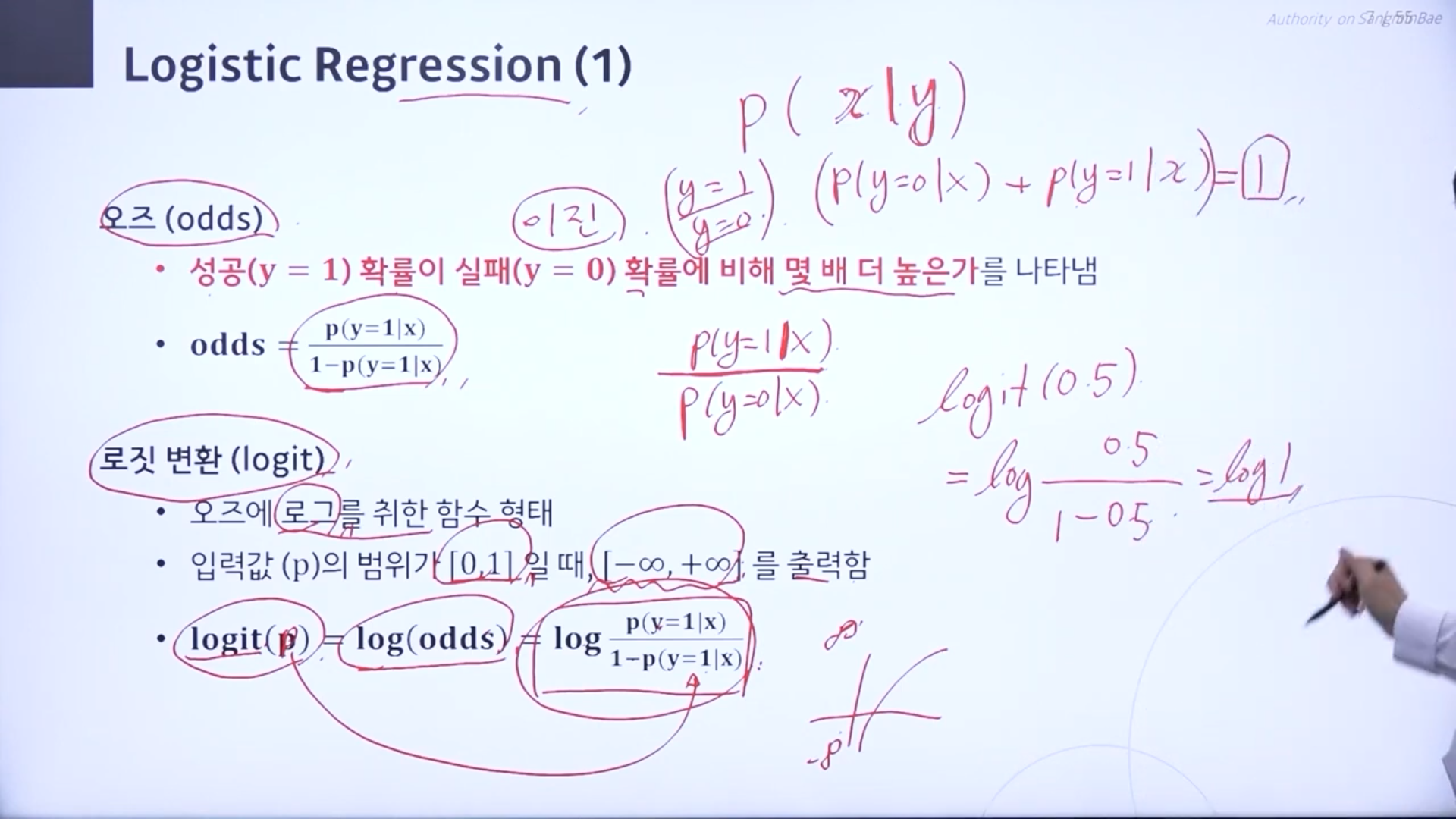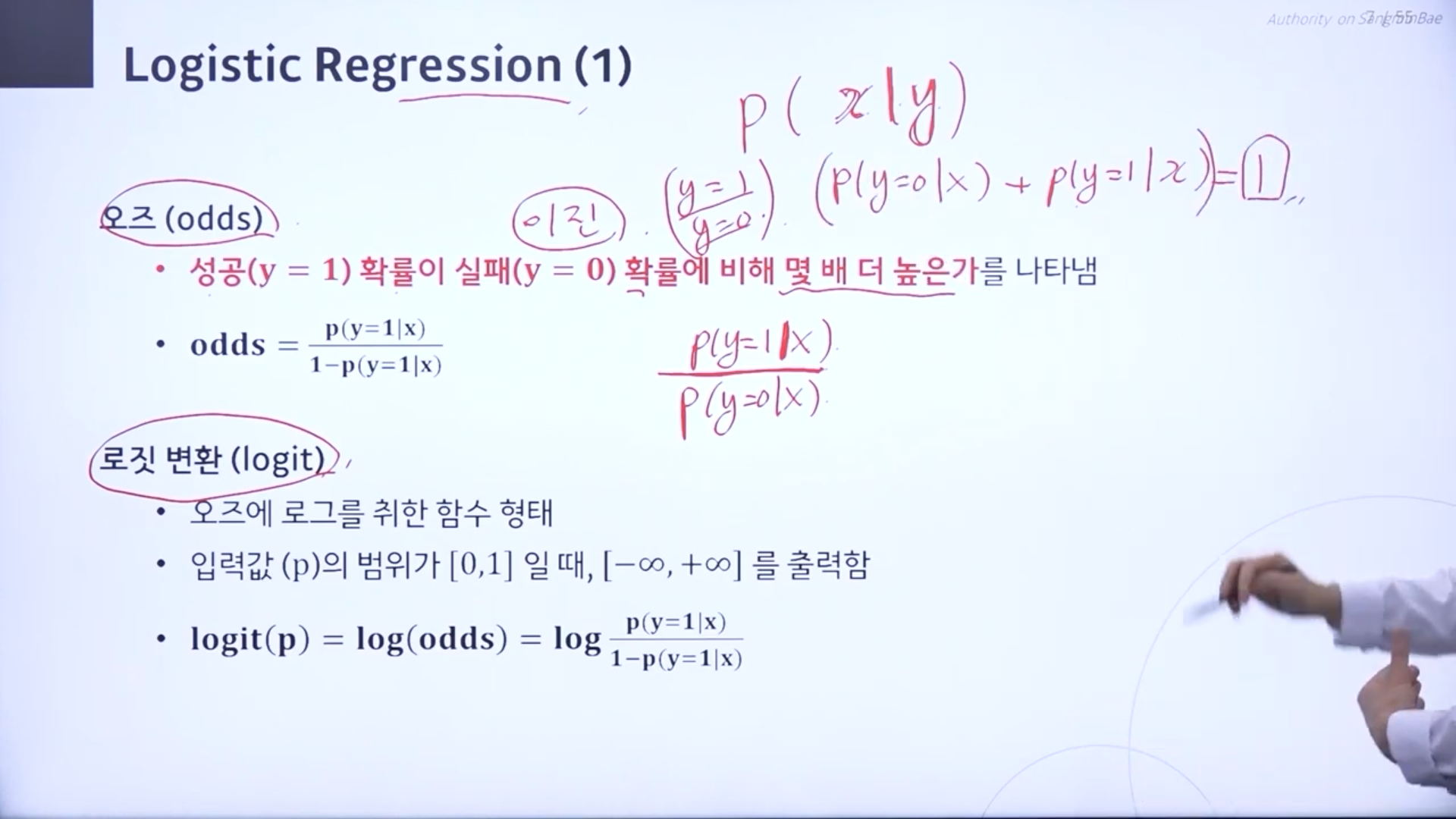 -> y=1 성공할 확률, y=0 실패할 확률 -> P(y=0|x)분의 P(y=1|x)